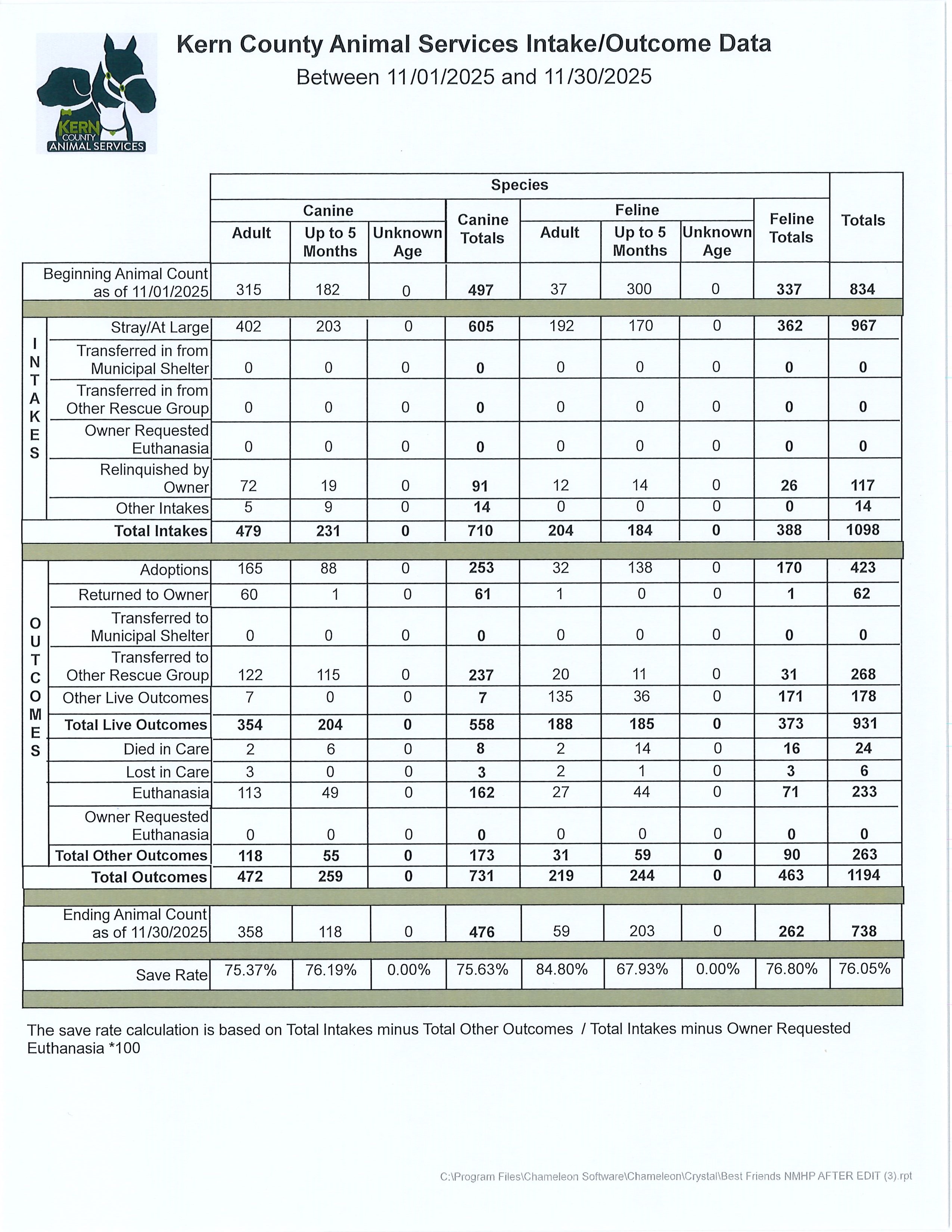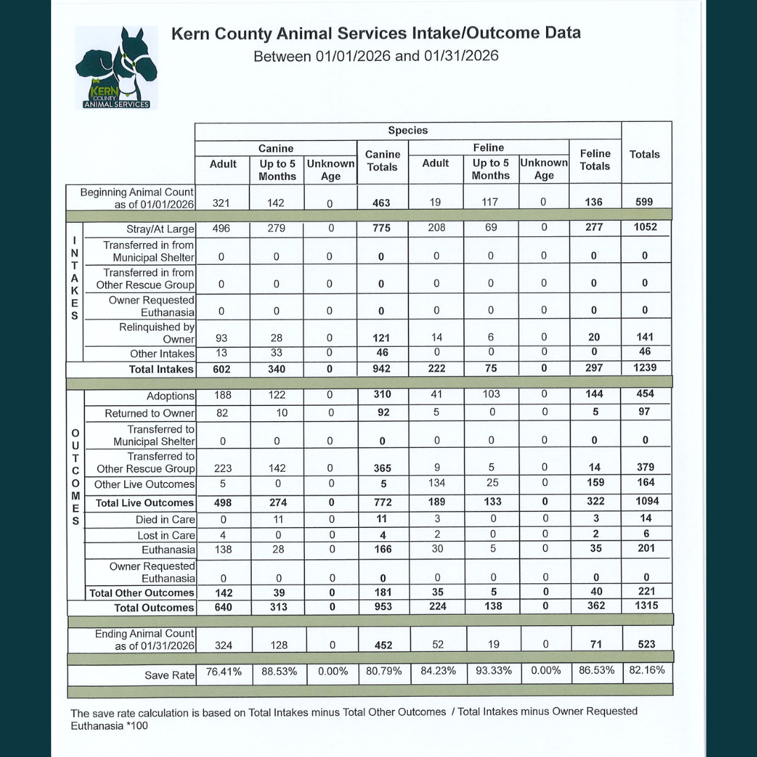 If you need reports from before 2015, please contact animalservices@kerncounty.com.