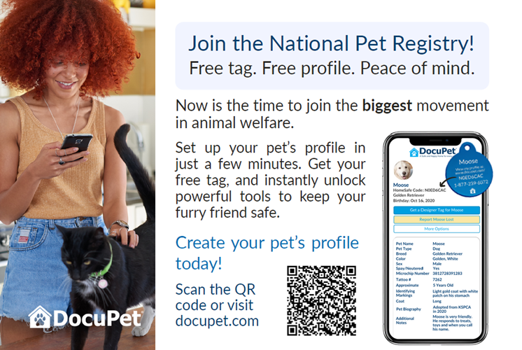 We’ve partnered with DocuPet, the National Pet Registry, to give your furry family members the protection they deserve.