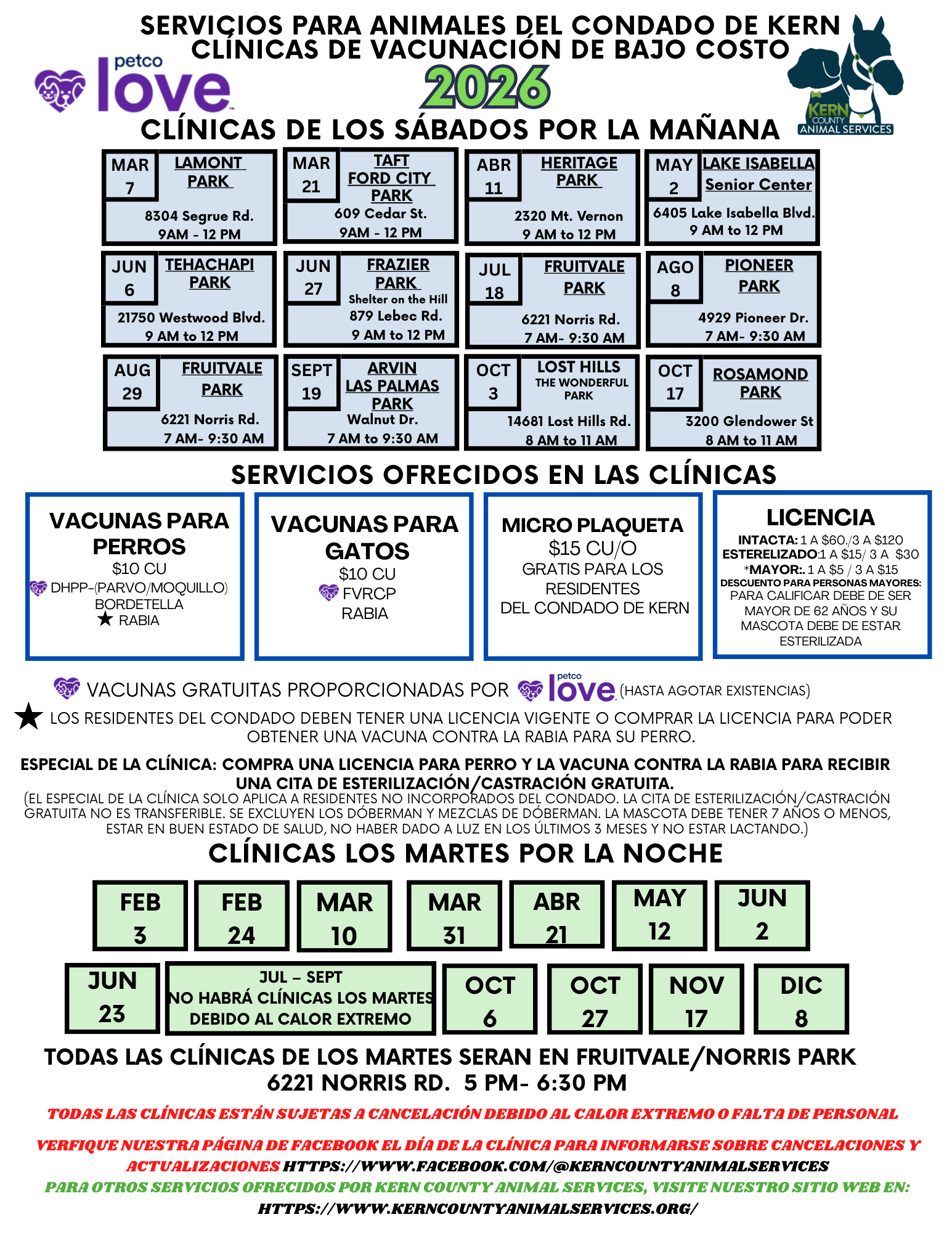 Tuesday Evening and Saturday Morning Clinics - Espanol -Clínicas realizadas en Bakersfield y ubicaciones en todo el condado de Kern